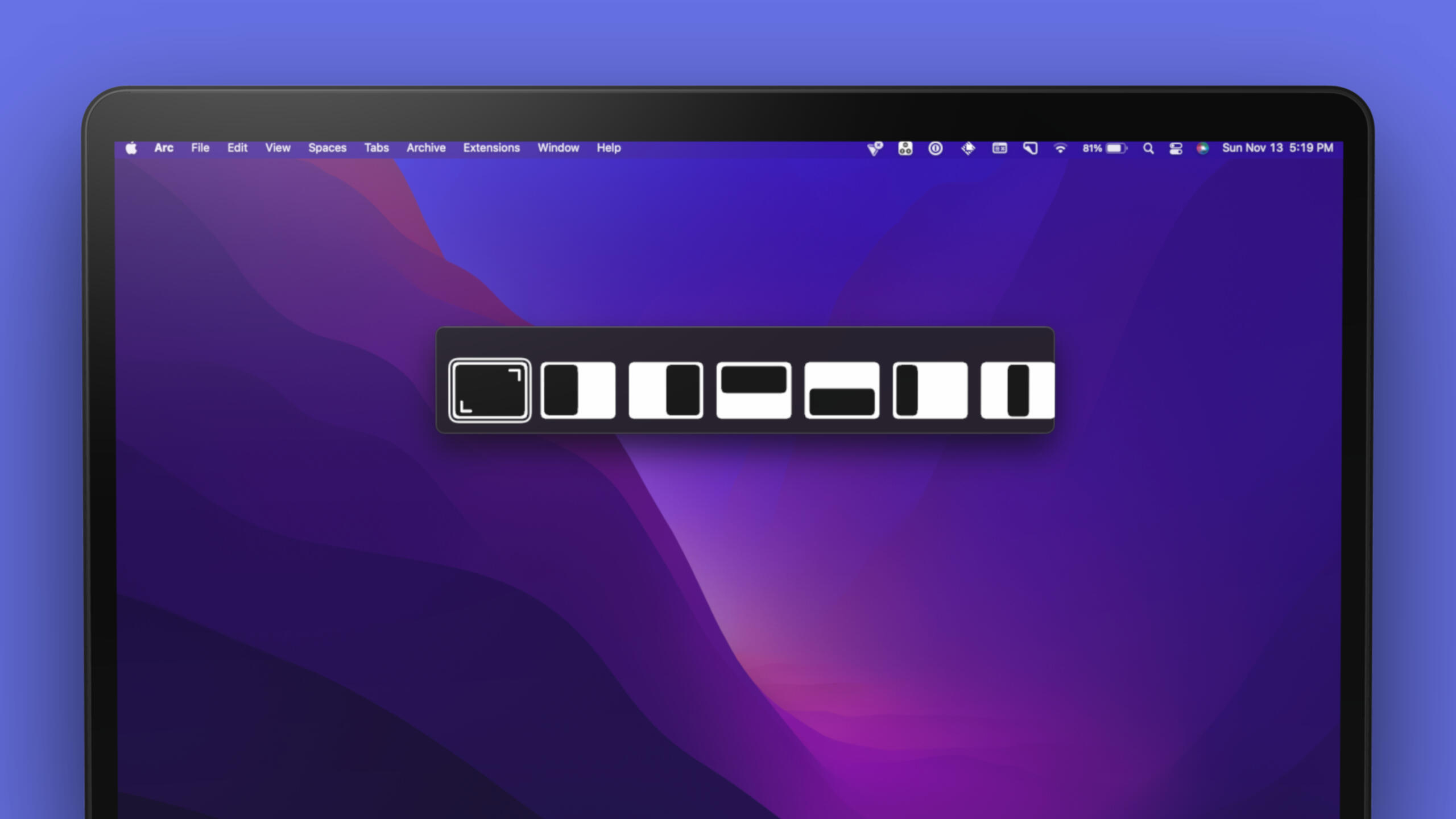 Just like Apple's app switcher to switch apps, layout switcher changes the layout of your app. It mimics the behavior of Apple's CMD+TAB but instead here you'd need to assign OPT+TAB as keyboard shortcuts